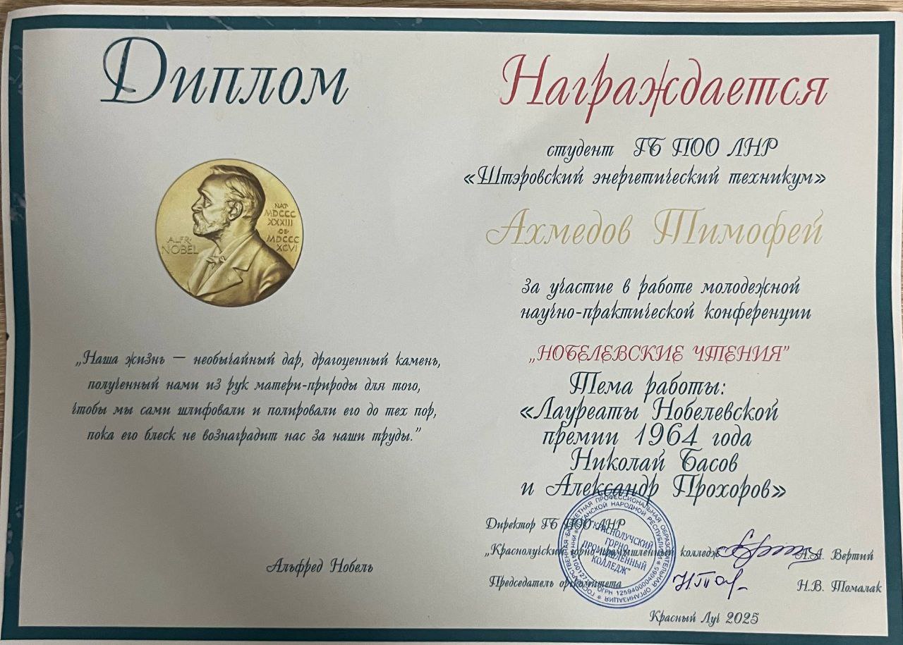 научно-поисковую работу " Нобелевские лауреаты Николай Басов и Александр