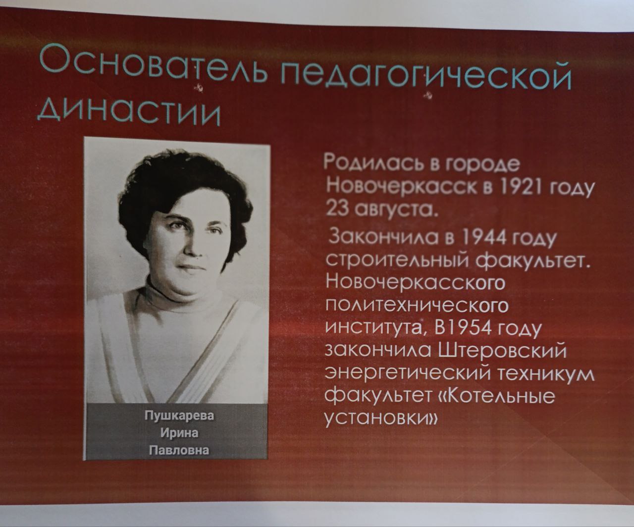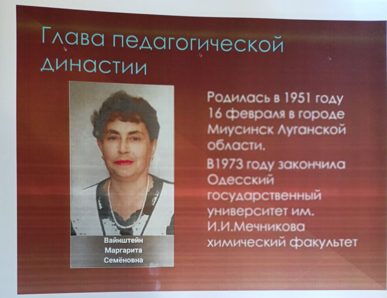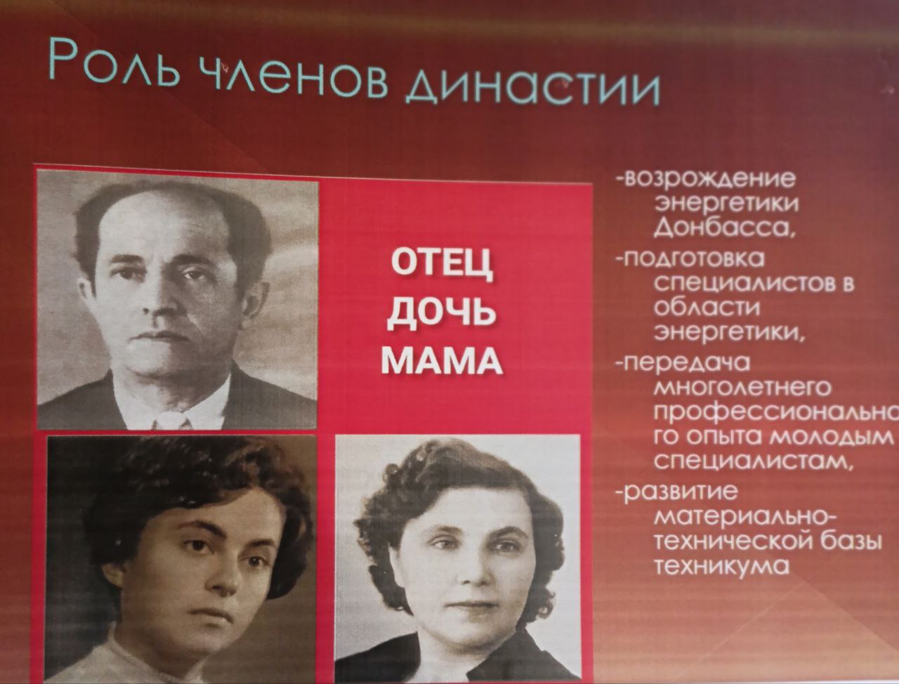 Древо " Педагогические ДИНАСТИИ" ГБОУ СПО ЛНР "Штэровский энергетический техникум". Накануне празднования знаменательной даты - 85-летия СПО - студенты познакомились с вкладом наших преподавателей в развитие техникума. Биография членов семьи Вайнштейн М.С. тесно связана с Штэровским энерготехникумом. Был собран материал о членах этой семьи- профессионалов, их вкладе в подготовку будущих энергетиков.